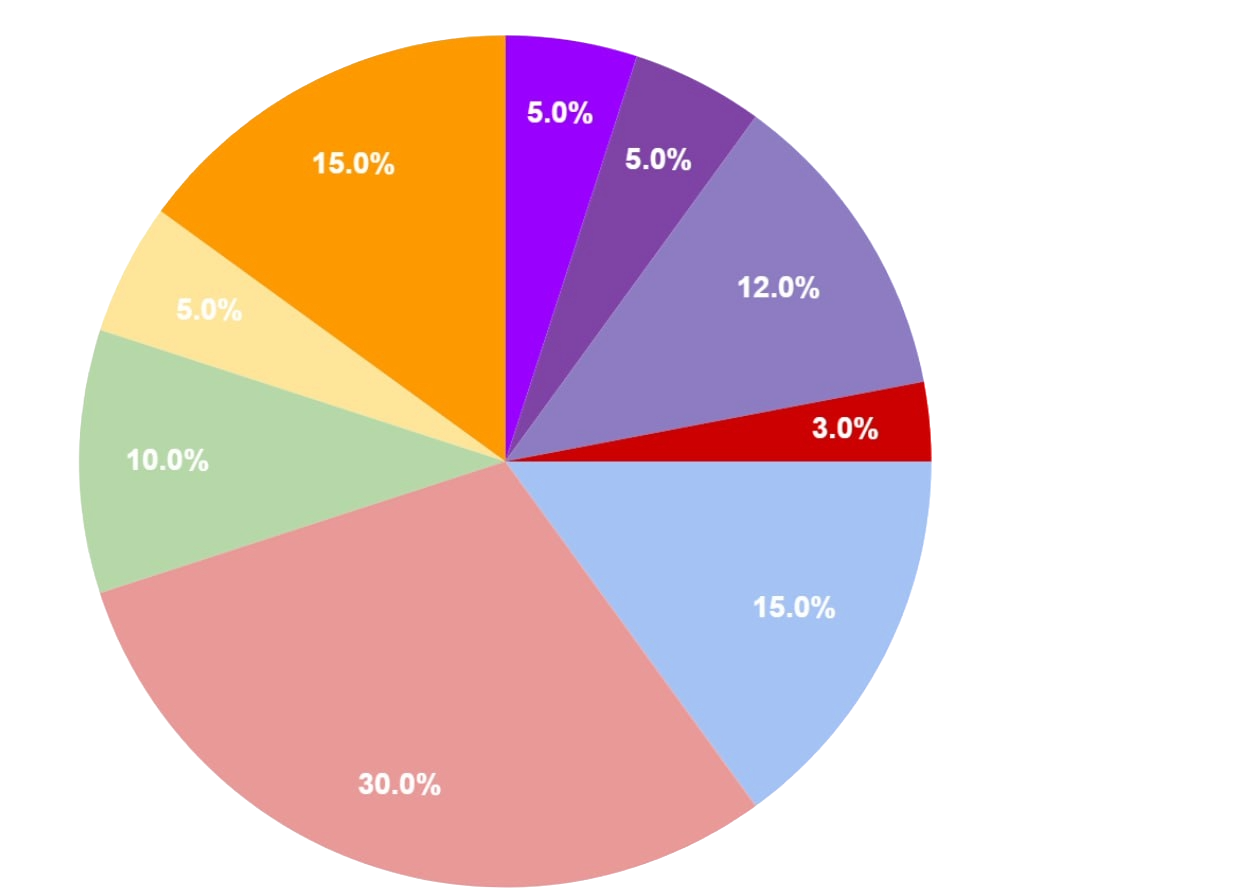 | Pre-seed | 5.00% | 25,000,000 | 15.00% | 0.75% | 3 | 9 | 12 |